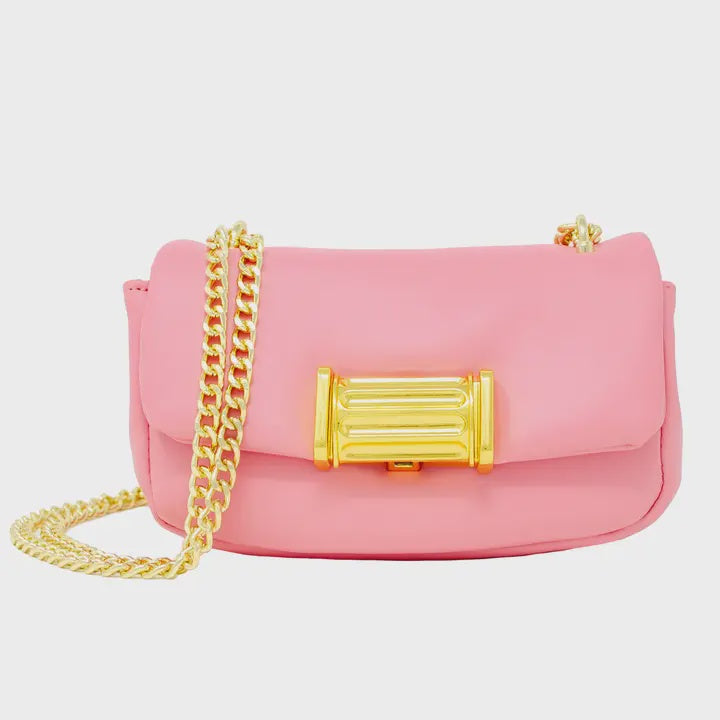 Leather clutch bag with drop down metal closure. This is an elegant style designed bag for dressy events. This bag features a soft lamb skin like leather and can be worn on shoulder or as a cross body.